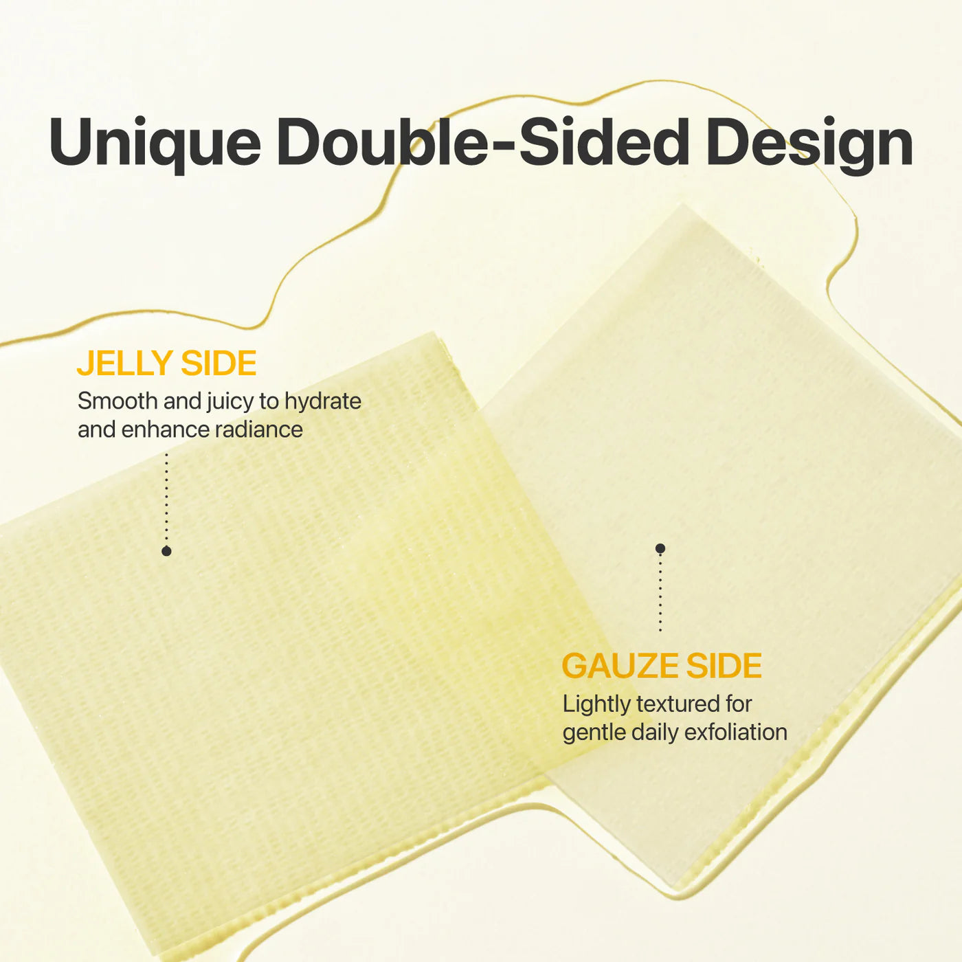 [TARGETED DARK SPOT CARE] Double-sided toner pads with a smooth glutathione jelly side for tone-evening and hydration, and a cotton gauze side for gentle exfoliation.