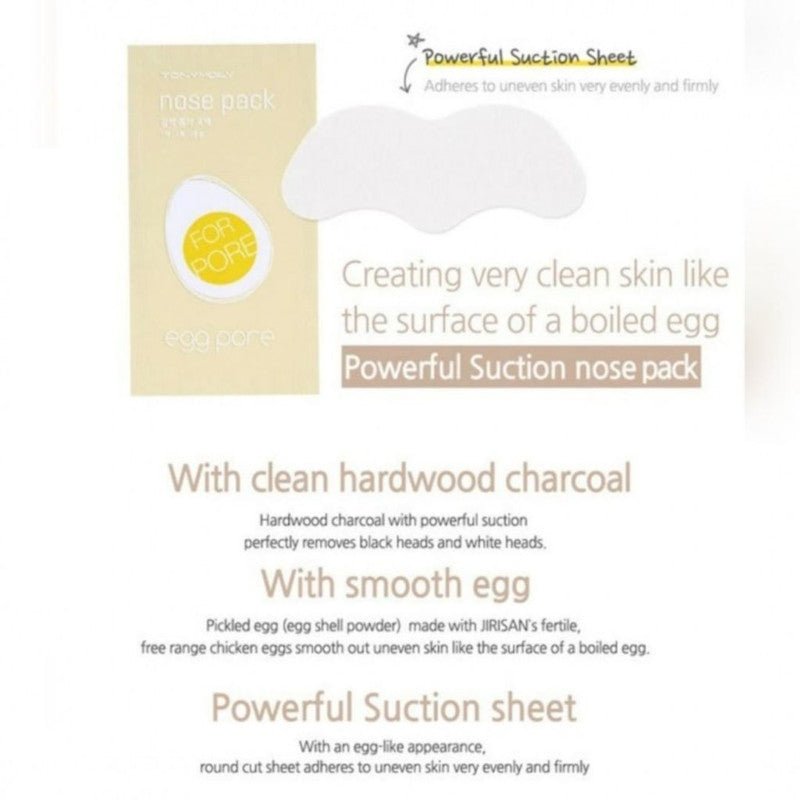 These Tonymoly Egg Pore Nose Pack Strips are a hi-tech formula made with eggshell powder and charcoal to eliminate blackheads and whiteheads easily!