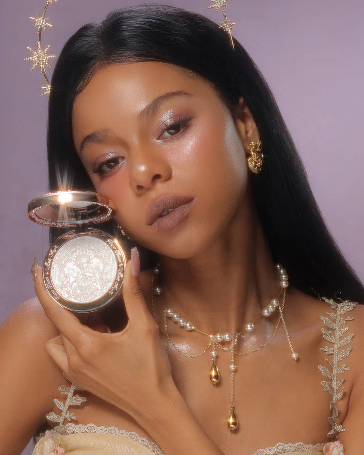 Catch the light with a soft, divine glow that brings a touch of angelic radiance to your skin.