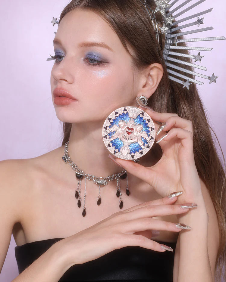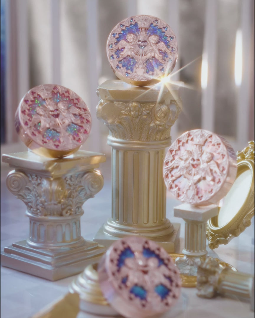 This highlighter has a fine, velvety texture that adheres smoothly to skin and creates a luminous glow without any heavy feeling. Inspired by medieval European aesthetics, its exquisite packaging features rose and angel elements for an ethereal touch. The Eros’s Fable shade is a pearly champagne color perfect for creating a soft and sweet makeup look.