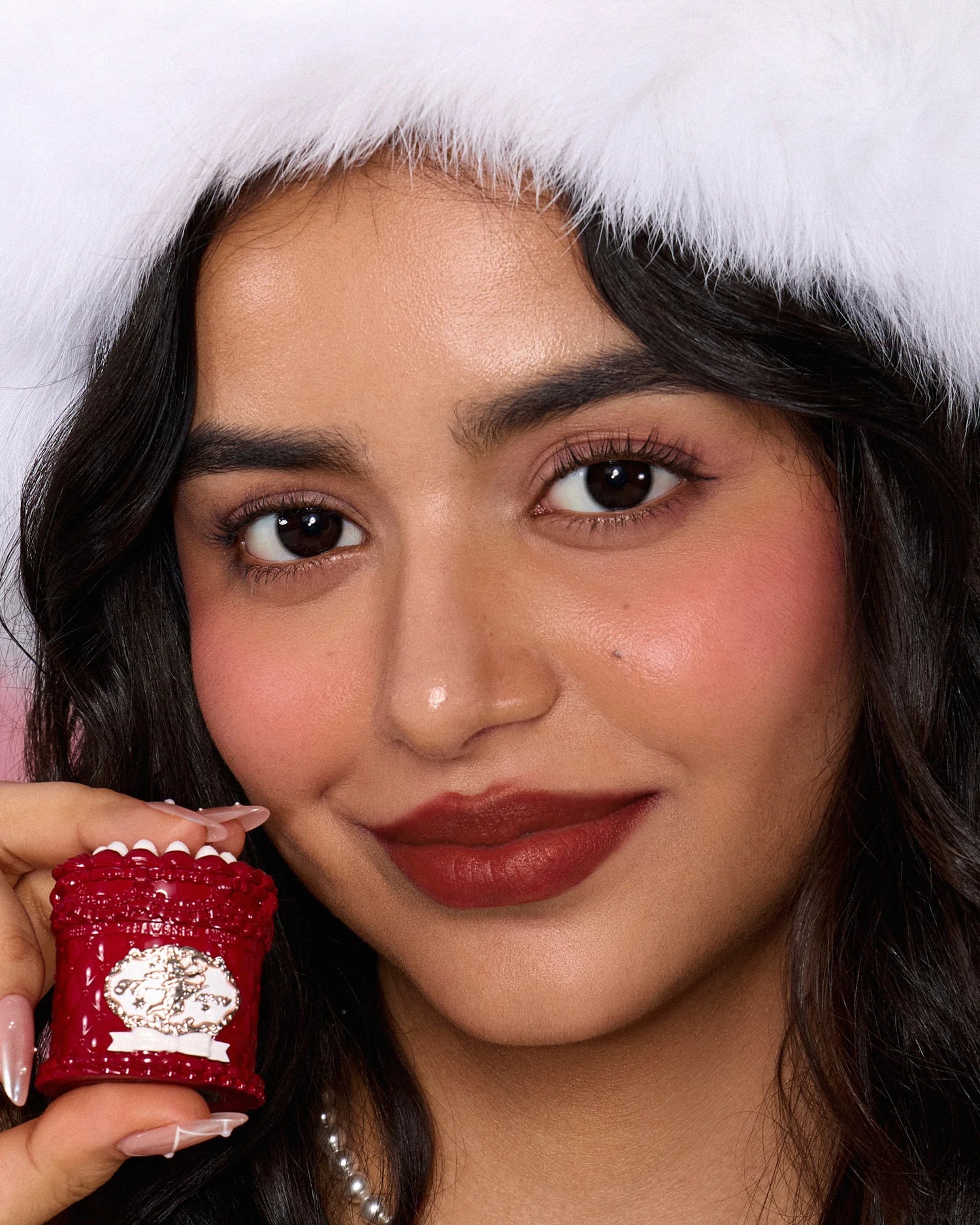 Velvety matte lip cream in a mini jar—an on-the-go dessert for your lips.