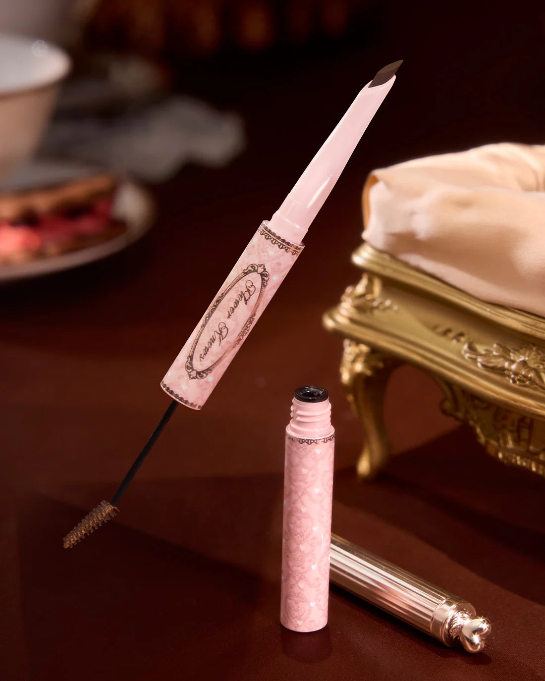 Dual-ended brow pencil and gel — slanted parallelogram tip for hair-by-hair precision or quick full-area fill, no sharpening needed!