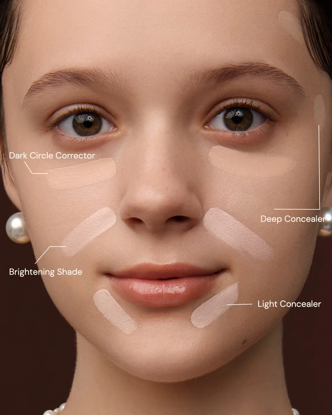 Light Concealer — Creamy light beige to cover minor imperfections and even out dull areas.