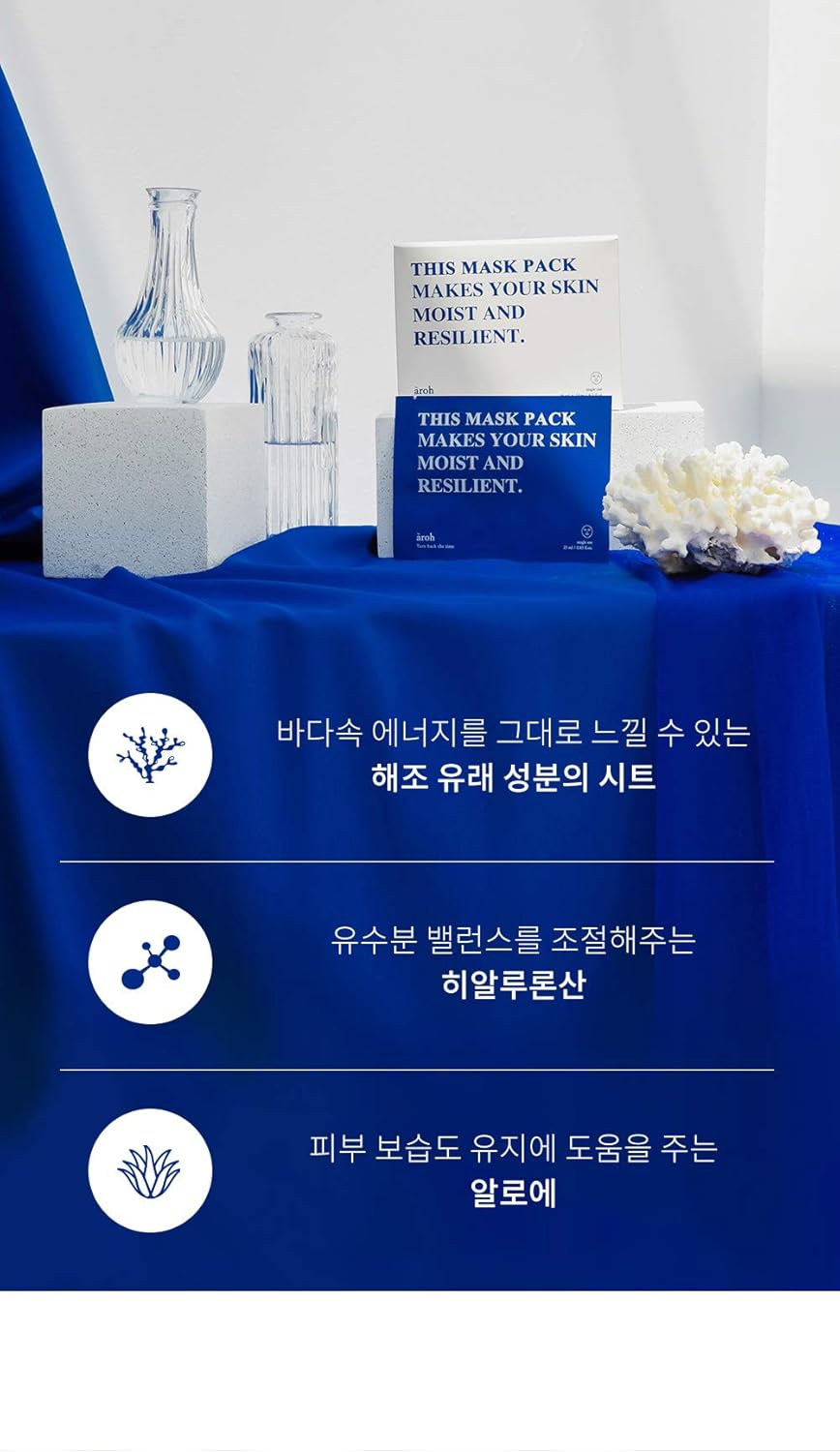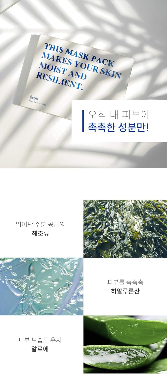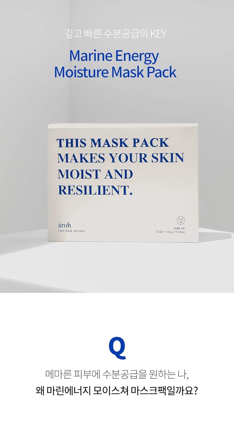 • AROH Marine Energy Moisture Sheet Mask provides superior hydration that can quickly replenish skin moisture and boost the skin's water barrier. It contains a marine power complex to achieve deep moisturization and stabilize the skin conditions.