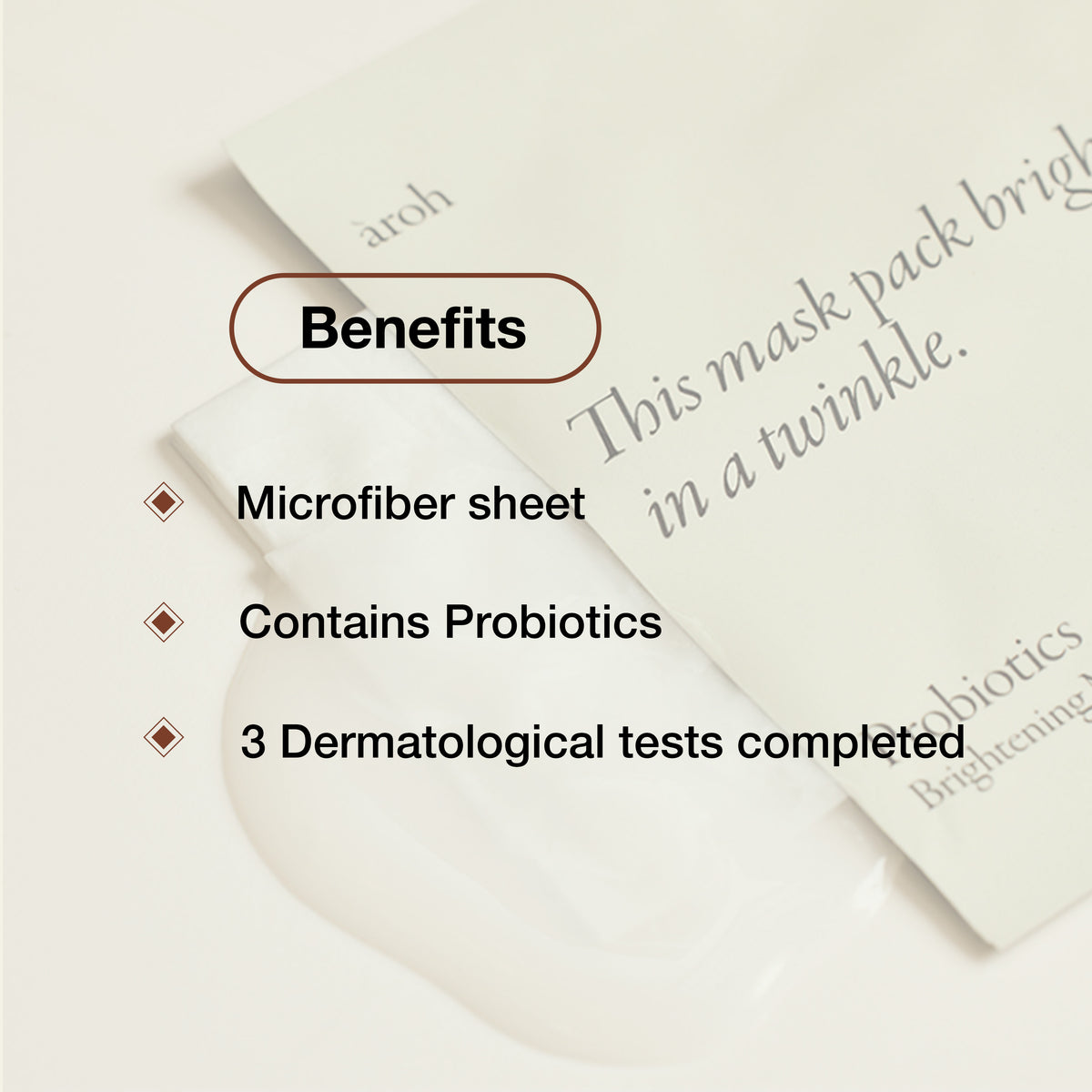 - AROH Probiotics Brightening Sheet Mask contains probiotics which can help brighten and nourish the skin. It also delivers vitality and moisture to dull skin, making it look vibrant and healthy.