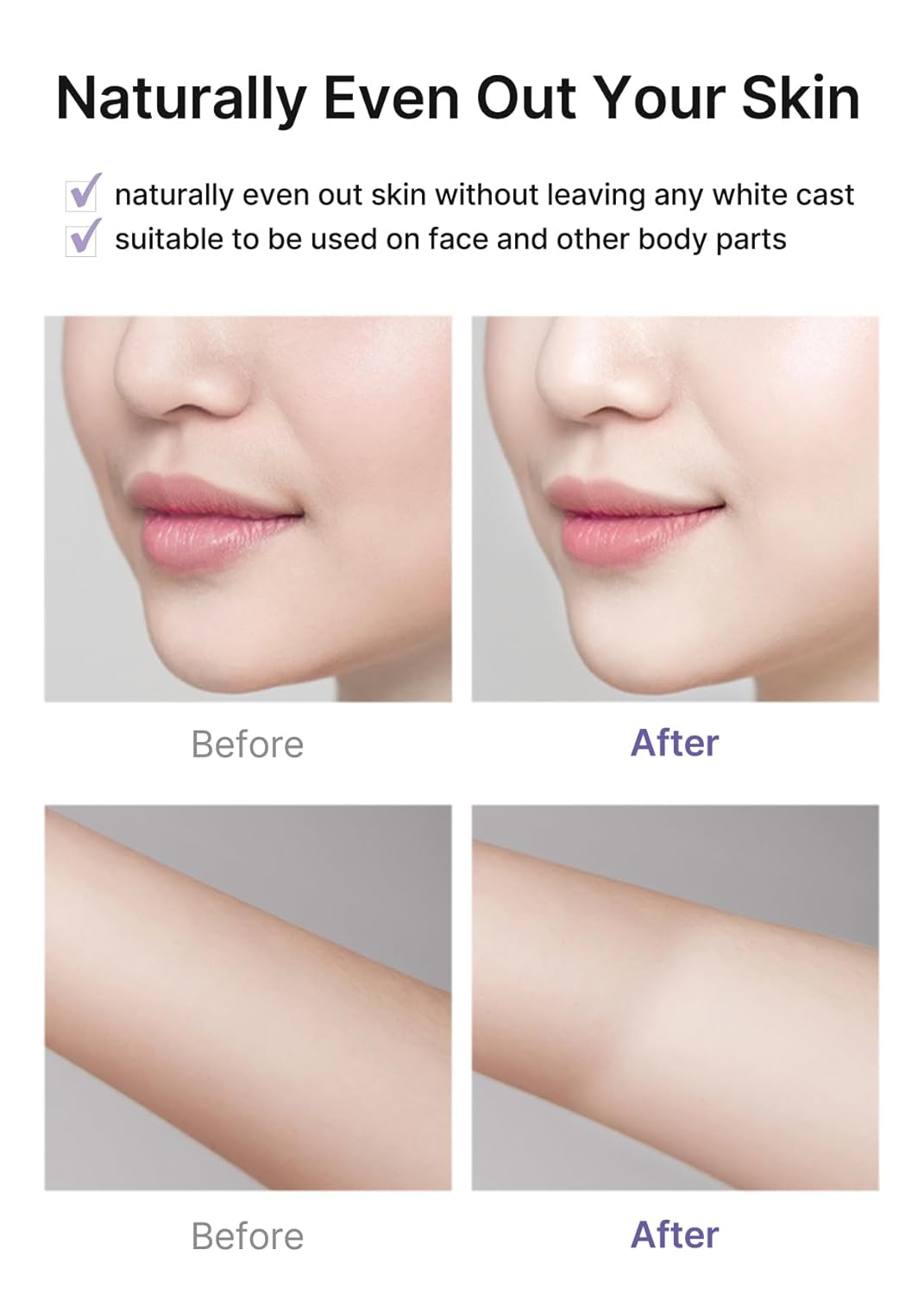 - Its soft, creamy texture ensures a smooth application without leaving a white cast.