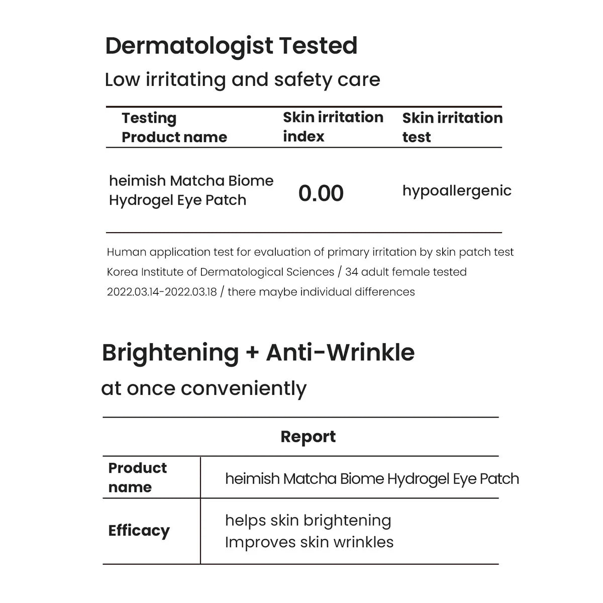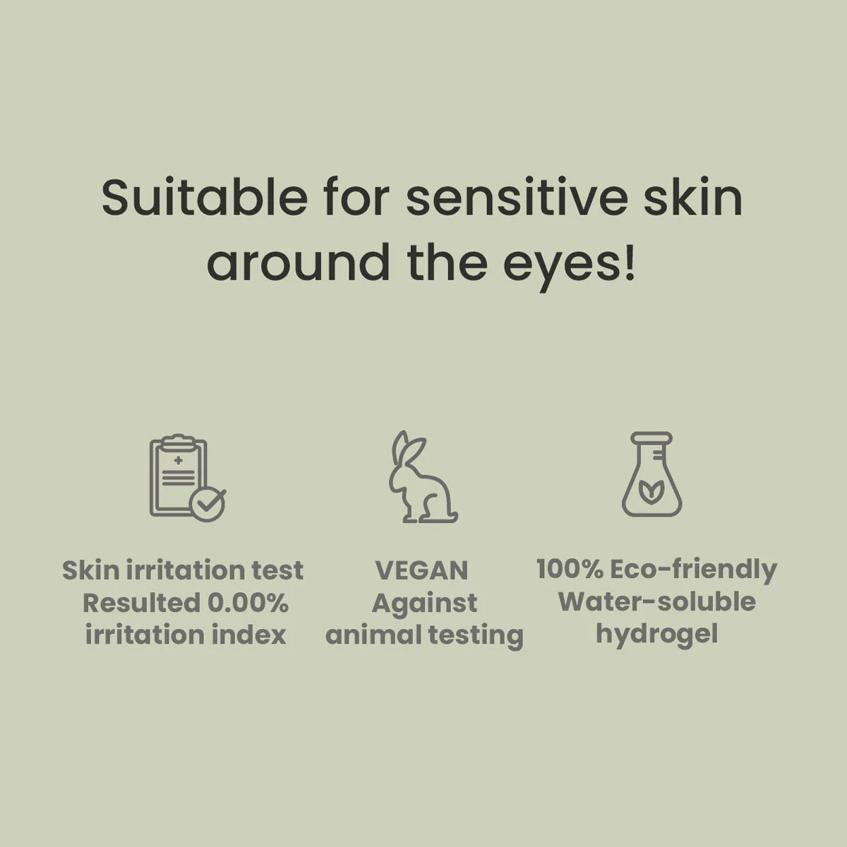 This eye patch repairs irritated skin and brightens dark circles with Matcha probiotics. Easy to use on any eye shapes due to hydrogel's highly adhesive texture.