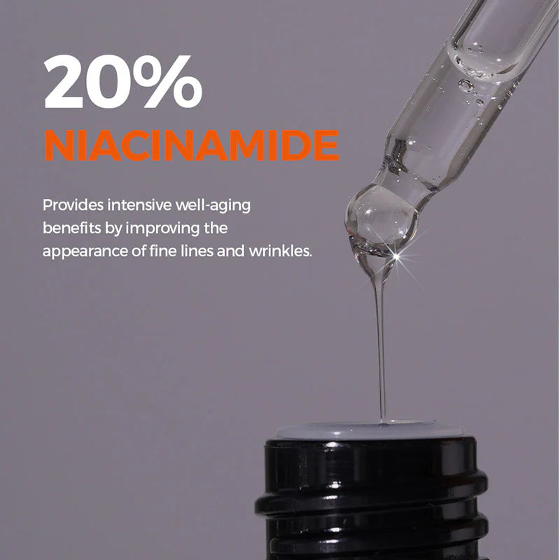 - A sebum-control serum that contains 20% Niacinamide to reduce the appearance of fine lines and wrinkles.
