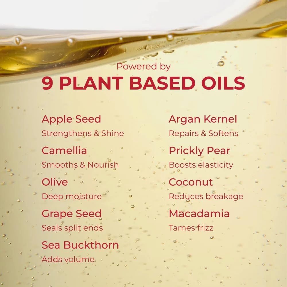 • A nourishing hair oil essence enriched with Apple Fruit Extract and Biotin to enhance hair elasticity and thickness, while promoting hair growth.