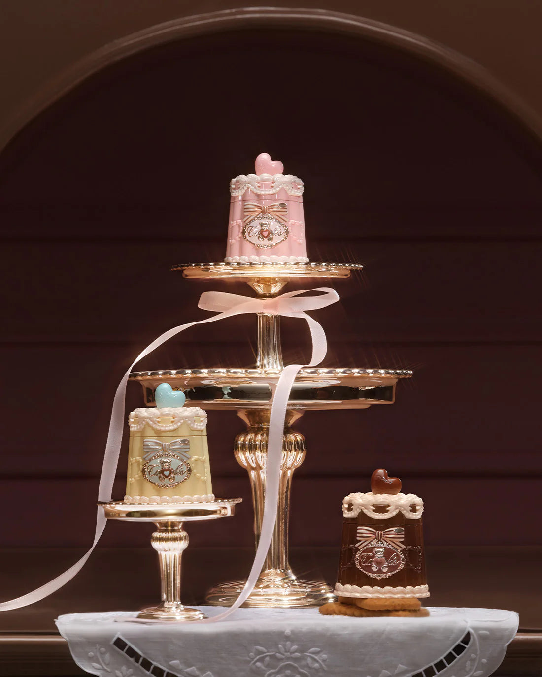 This design brings together the dessert’s charming bell-shaped silhouette with ornate cake piping details for an elegant, luxurious touch.