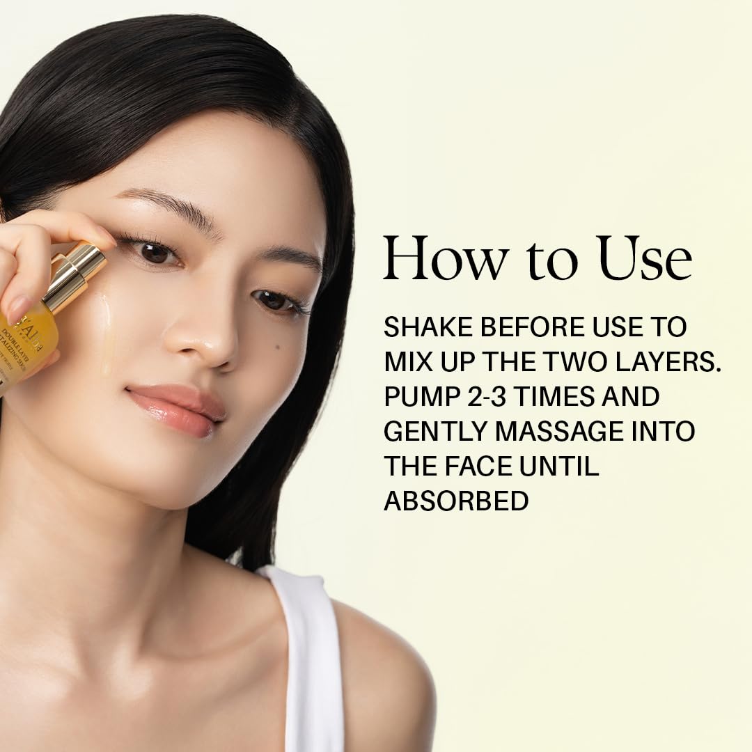 - With a 3:7 golden ratio mixture of moisturizing glossy oil and nutritional elastic serum that can be quickly absorbed by the skin, creating a moist and elastic skin without stickiness.