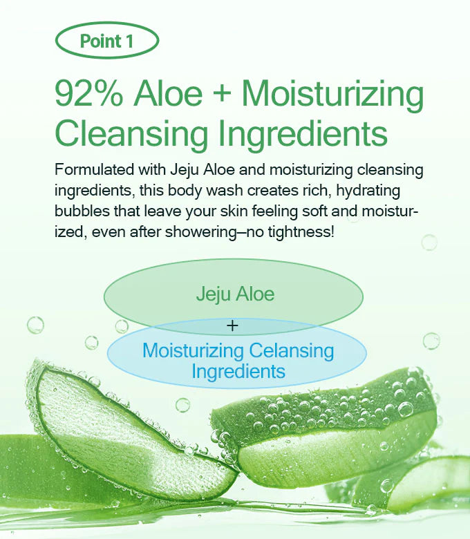 With 92% Jeju Aloe Vera Leaf Water, this shower gel hydrates the skin while gently cleansing. It features the SoothingPlus™ complex to help calm sensitive skin, leaving your skin feeling refreshed.