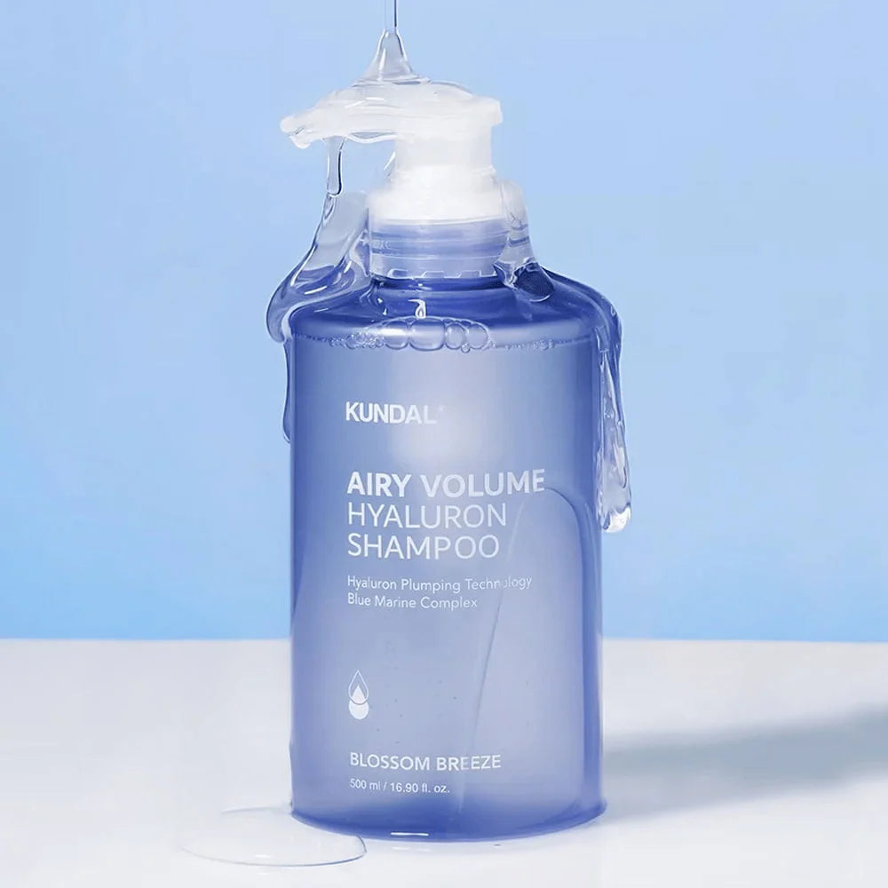 Give your hair weightless volume with KUNDAL Airy Volume Hyaluron Shampoo. The advanced formula combines Hyaluron Plumping Technology with Blue Marine Complex, creating fuller hair from root to tip — while feeling light and fresh. The airy “Blossom Breeze” scent makes every shower a sensory moment.