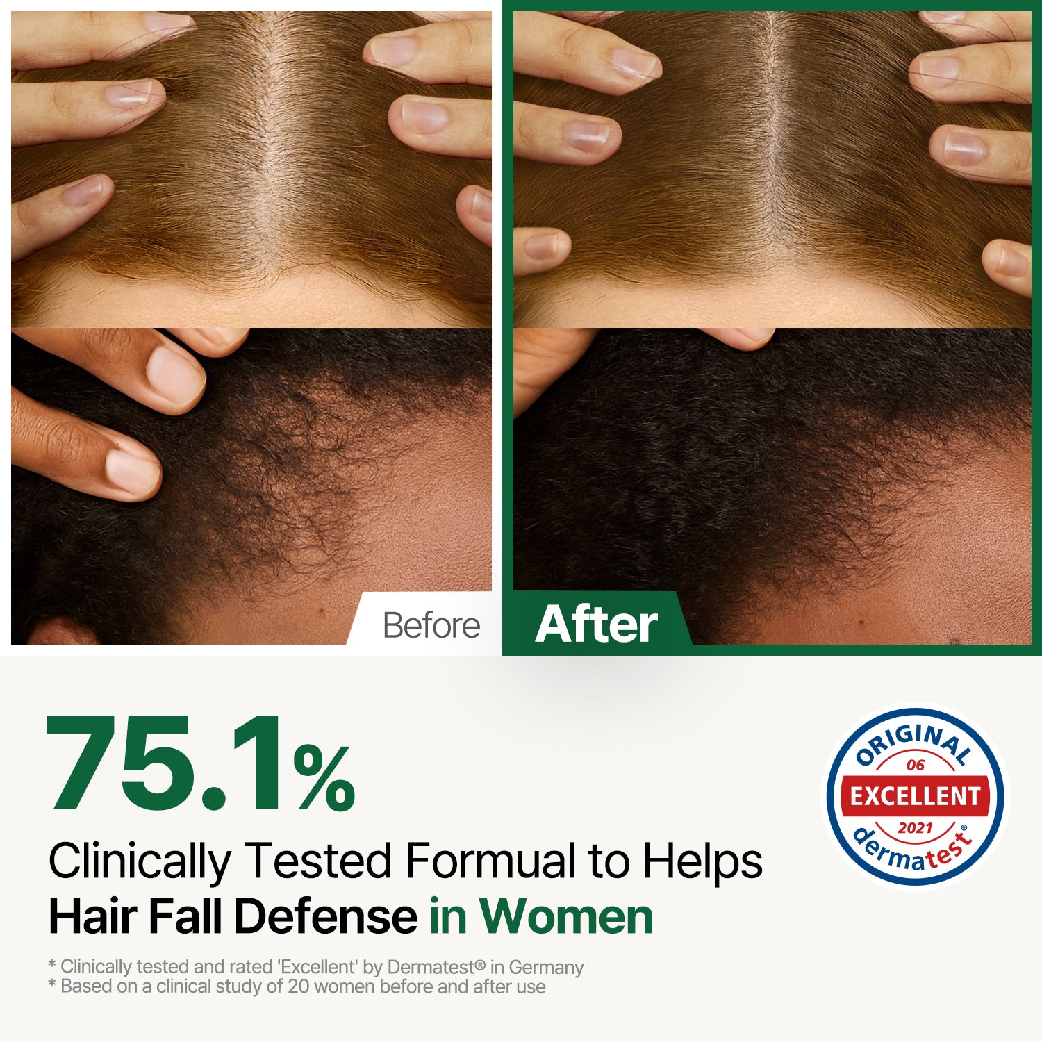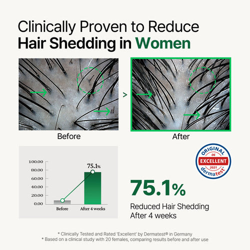 • This product contains anti hair loss ingredient that is approved by the Ministry of Food and Drug Safety.