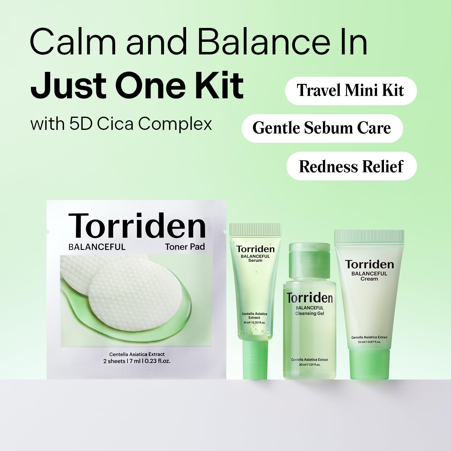 Eager to try Torriden’s ultra-soothing Balanceful Cica series? Go for this trial kit comprising of a cleansing gel, toner pad, serum and cream from the line. Kick-start your morning routine with the lightweight Cleansing Gel infused with LHA to purge pores of excess sebum, as well as 5D Cica Complex to soothe irritation. Further purify skin with the cica-rich Toner Pad featuring a double-sided design for smoothing and soothing skin. Keep flare-ups at bay with the lightweight yet powerful Serum infused with five kinds of cica extract to fortify the skin barrier. Cap off your routine with the barrier-repairing Cream for skin-strengthening and hydrating benefits courtesy of various cica ingredients. All products are dermatologically tested to be suitable for sensitive skin. Cleansing Gel, Serum and Cream comes in mini-size. The Toner Pad comes in a set of two, with the kit containing three sets.