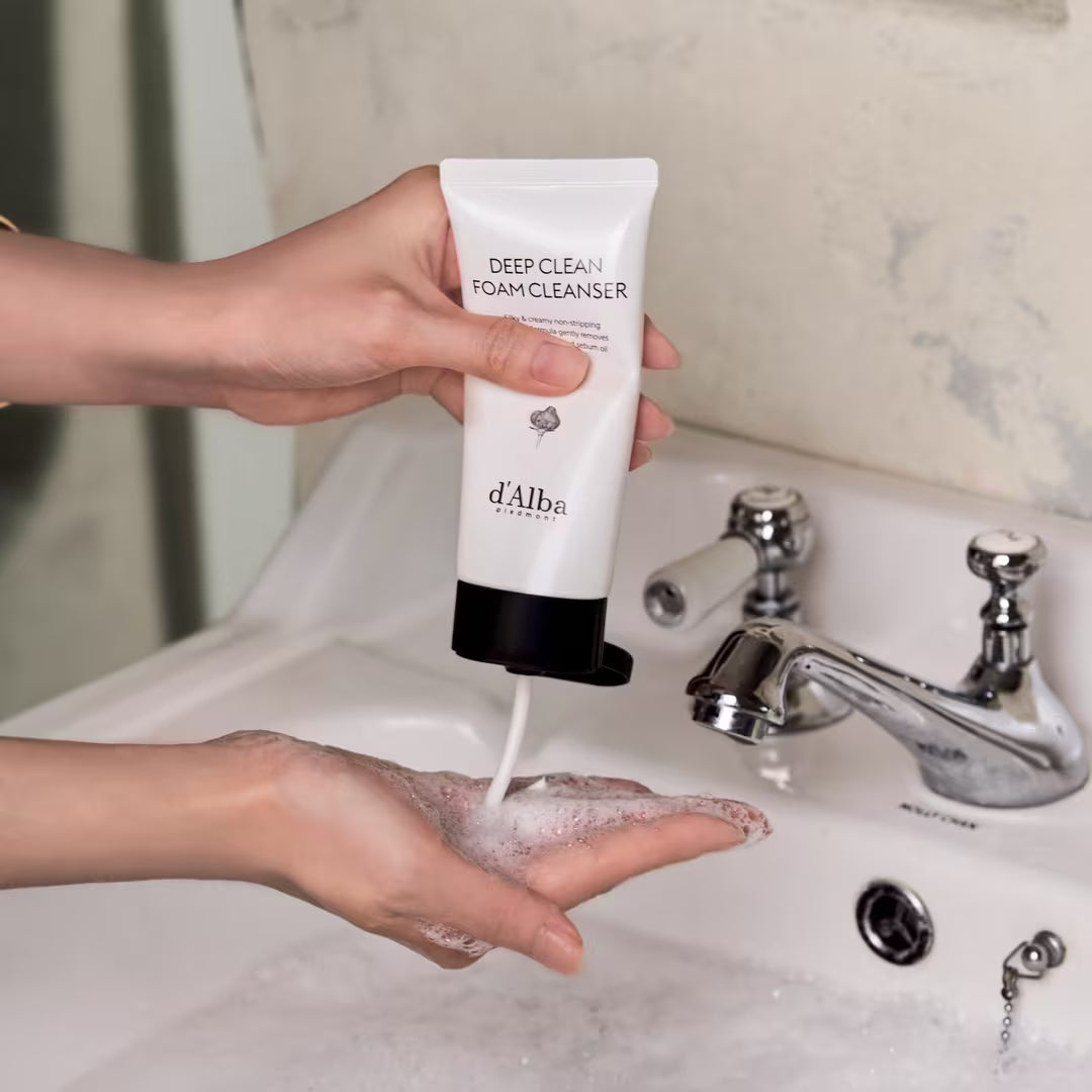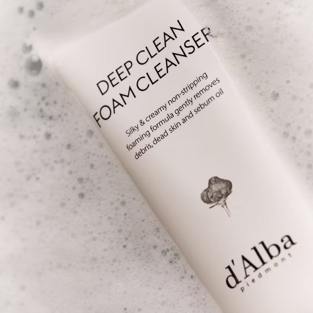 d'Alba Piedmont White Truffle Deep Clean Foam Cleanser is a mild, pH-balanced foam with plant-based surfactants to cleanse pores deeply without stripping moisture.