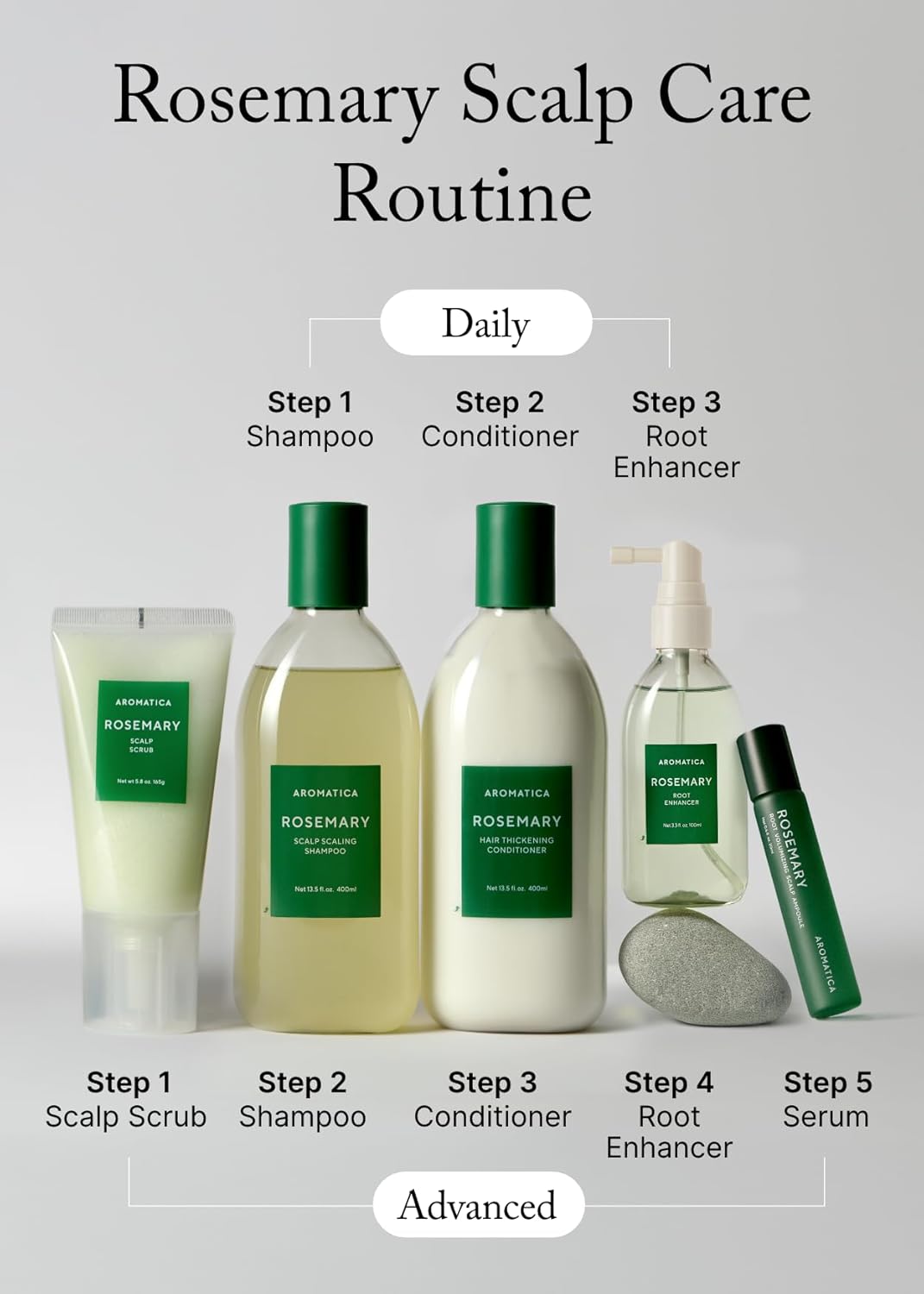 - The Scalp Enhancer Formula™(Rosemary, Pine Leaf, Ginger, Bhringraj, Basil, Coriander, Oregano extracts) nourishes scalp.