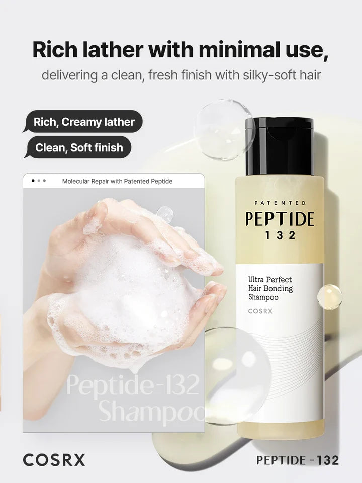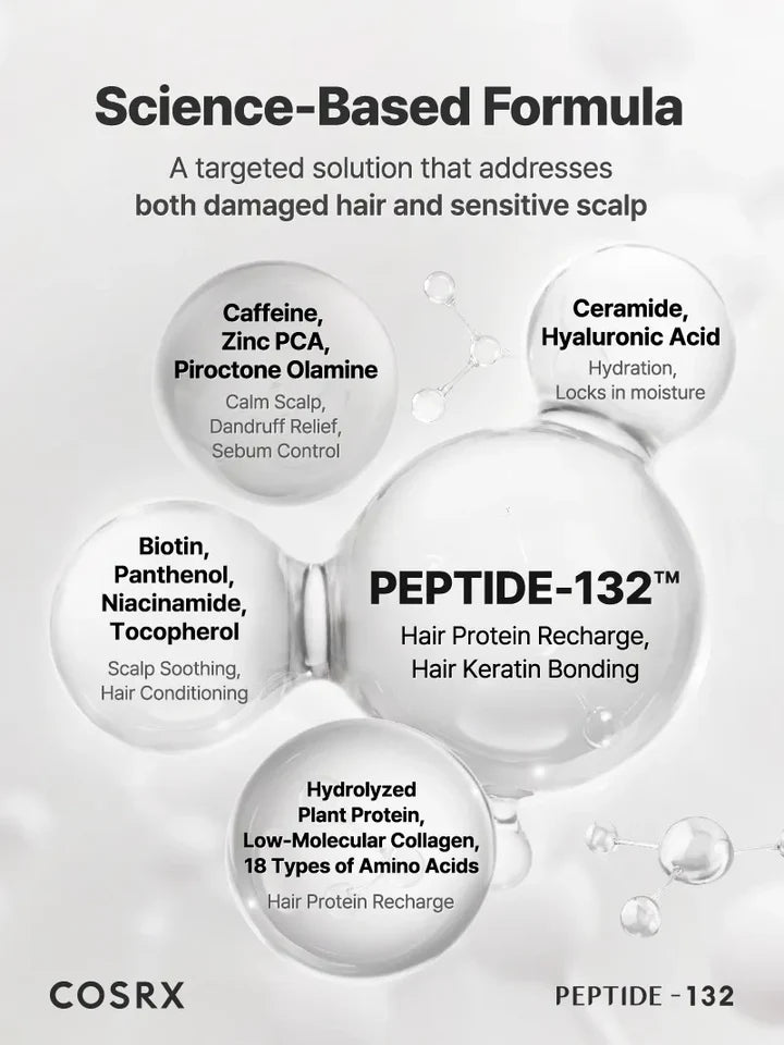 Bond-repair shampoo powered by patented PEPTIDE-132™ to strengthen damaged strands while gently cleansing and soothing the scalp.