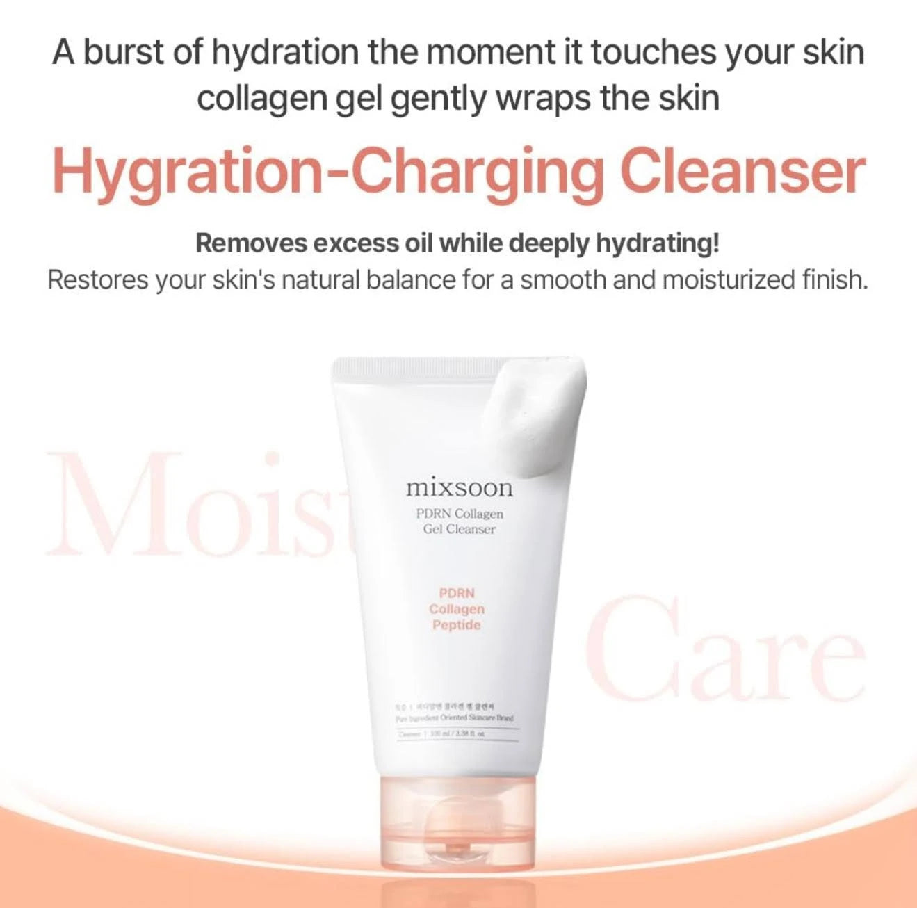 Mixsoon PDRN Collagen Gel Cleanser is a gentle, hydrating cleanser that refreshes and nourishes the skin. Infused with rice-derived PDRN, collagen, and peptides, it strengthens the skin barrier, boosts elasticity, and promotes a smooth, firm texture. Fermented rice bran brightens dull skin, while ultra-low molecular hyaluronic acid locks in moisture. Its lightweight, bouncy gel removes impurities without irritation, making it ideal for sensitive skin and daily use. Cleanse, hydrate, and protect in one step for a healthy, glowing complexion.