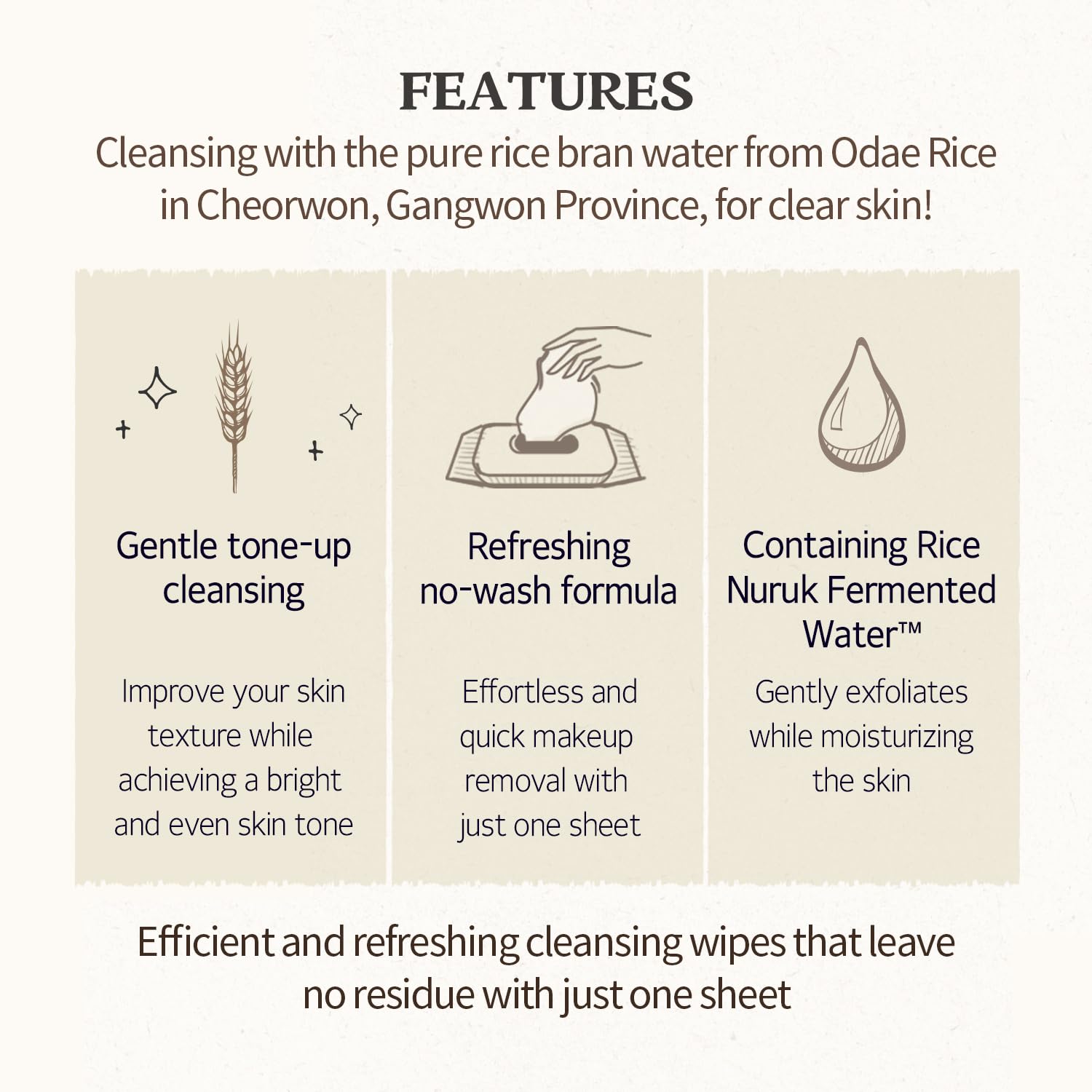 Refreshing cleansing tissue containing fermented rice extracts that offer deep cleansing to remove makeup and all skin impurities with excellent whitening effect for bright, clean, clear skin